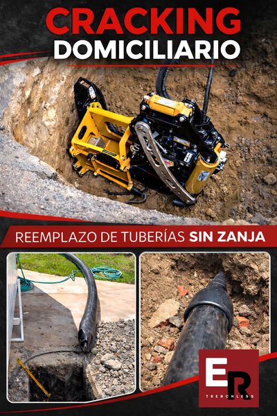 El cracking domiciliario es una técnica moderna de reemplazo de tuberías que permite renovar redes sanitarias dañadas sin necesidad de abrir zanjas a lo largo de toda la línea. Mediante el uso de equipos especializados, la tubería existente es fracturada mientras simultáneamente se instala una nueva tubería de mayor resistencia, todo desde pequeñas excavaciones de entrada y salida.